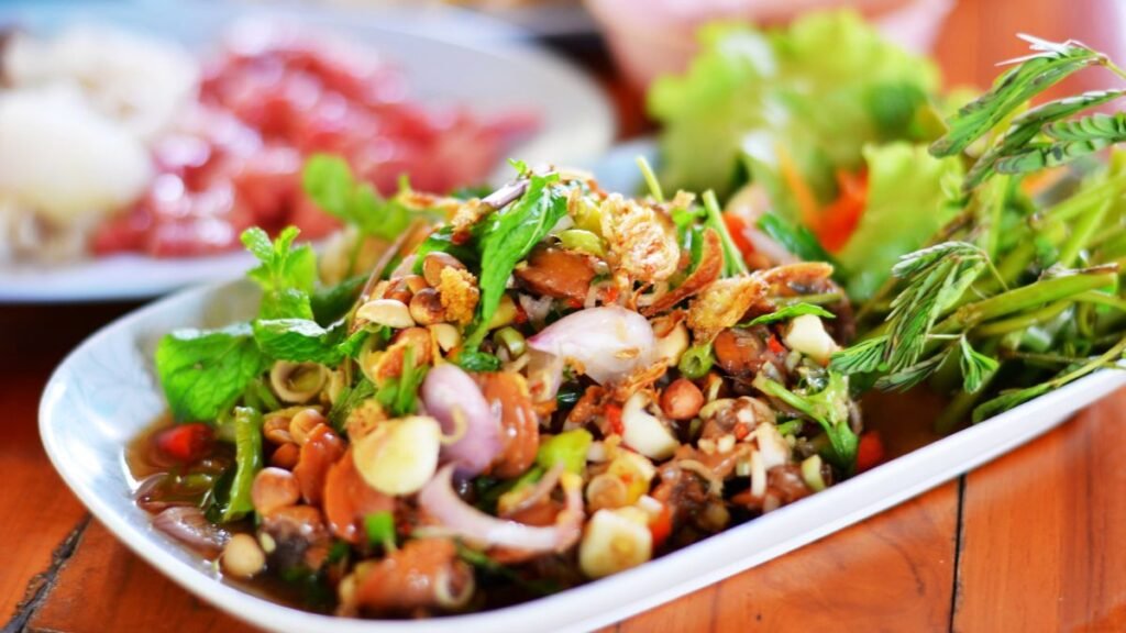 Another popular cuisine of Tripura is wahan mosdeng. It is a type of salad that is made with tomatoes, onions, chilies, and herbs. Wahan mosdeng is often served as a side dish with rice.