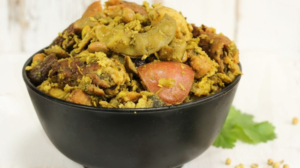 Undhiyu is a traditional and popular dish from the Indian state of Gujarat. It is a colorful and flavorful medley of vegetables and spices that are slow cooked to perfection. The name “undhiyu” comes from the Gujarati word “undo,” which means “upside down,” as the dish is traditionally cooked by burying the ingredients in an earthen pot and then cooking them over a fire.